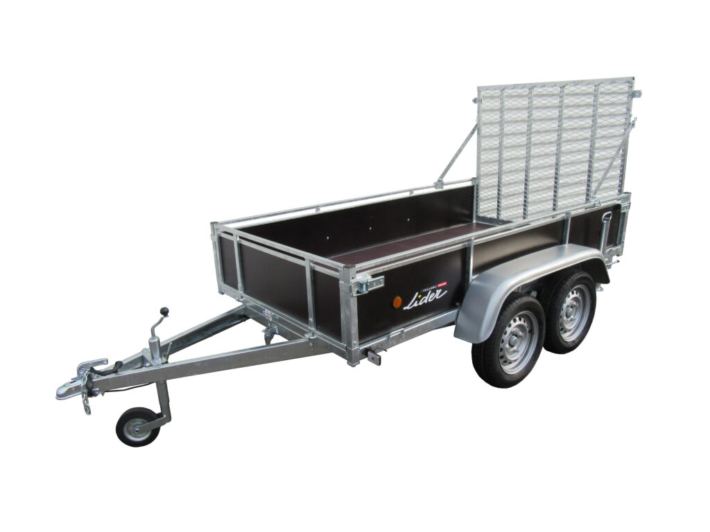 REMORQUE GAMME BOIS LIDER 45450 DIM UTILES 251 X 133 X 40 CM PTAC 750KG 2 ESSIEUX OPTION REHAUSSE GRILLAGEE 70CM